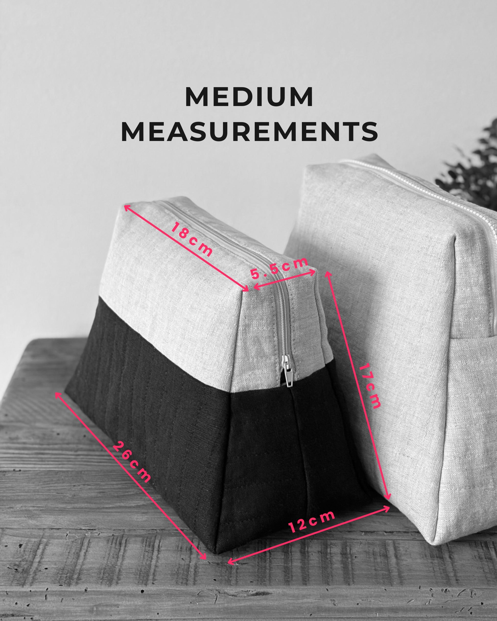 Please see the images to check approximate measurements for each size. Given the handmade nature of your finished bag, these are a guide only. The pattern has been created to work perfectly with the two zipper sizes.